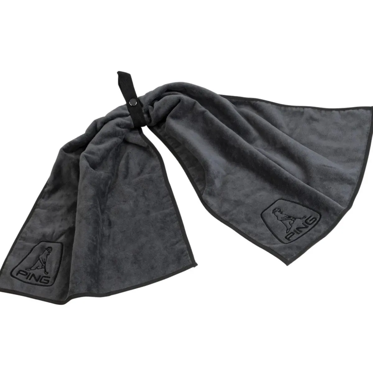 The Ping Bot-Tie Towel features a webbing loop with snap, embroidered PING logos, made out of 100% cotton
