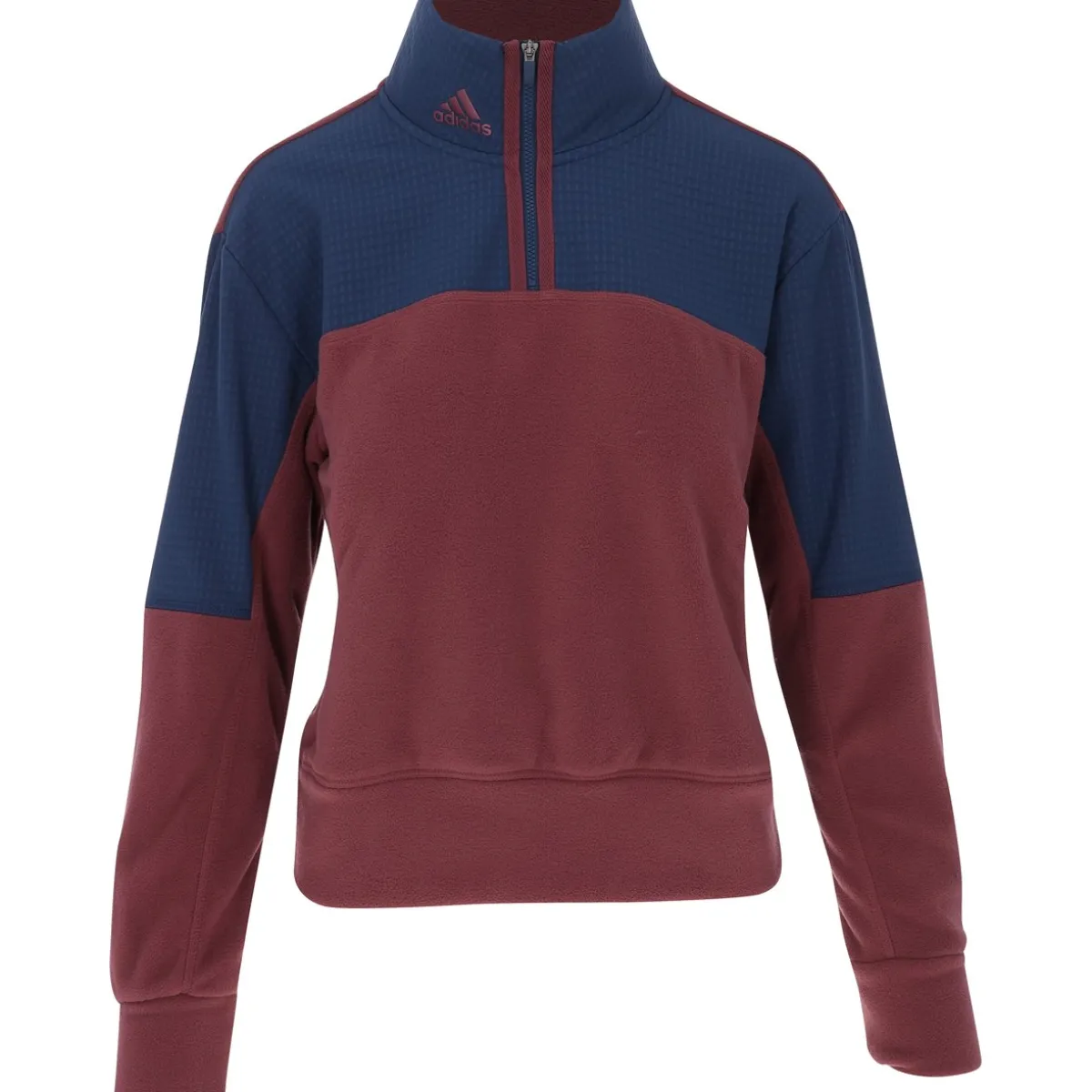 - Quarter-zip placket with a flap at the top that prevents chafing