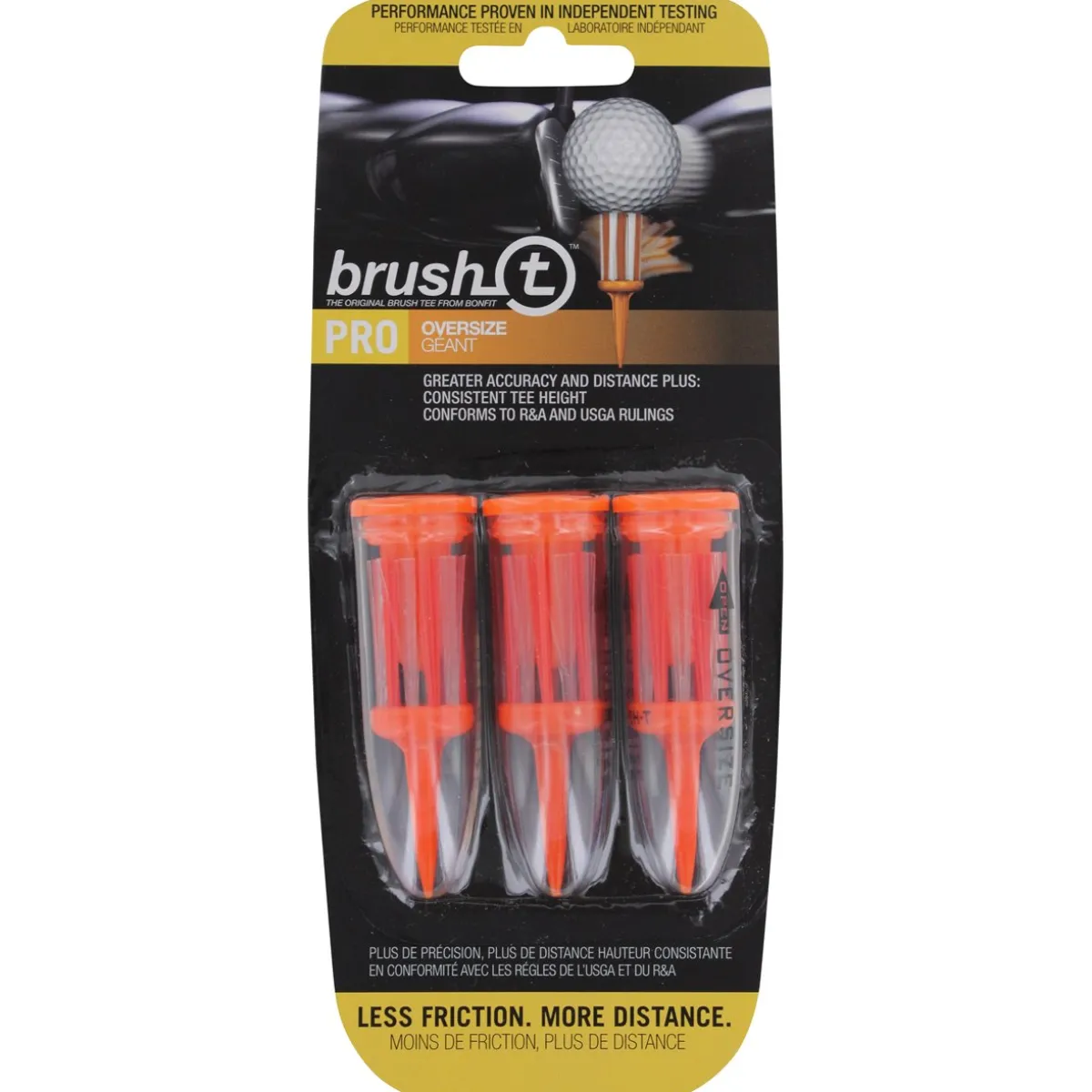 3 PACK BRUSH TEE PRO OVERSIZE TEES.The OVERSIZED Brush t PRO is ideally suited for oversized woods and Drivers – 200cc t o 460cc – thus enabling the ball to be struck in the center of the large sweet spot, for maximum distance