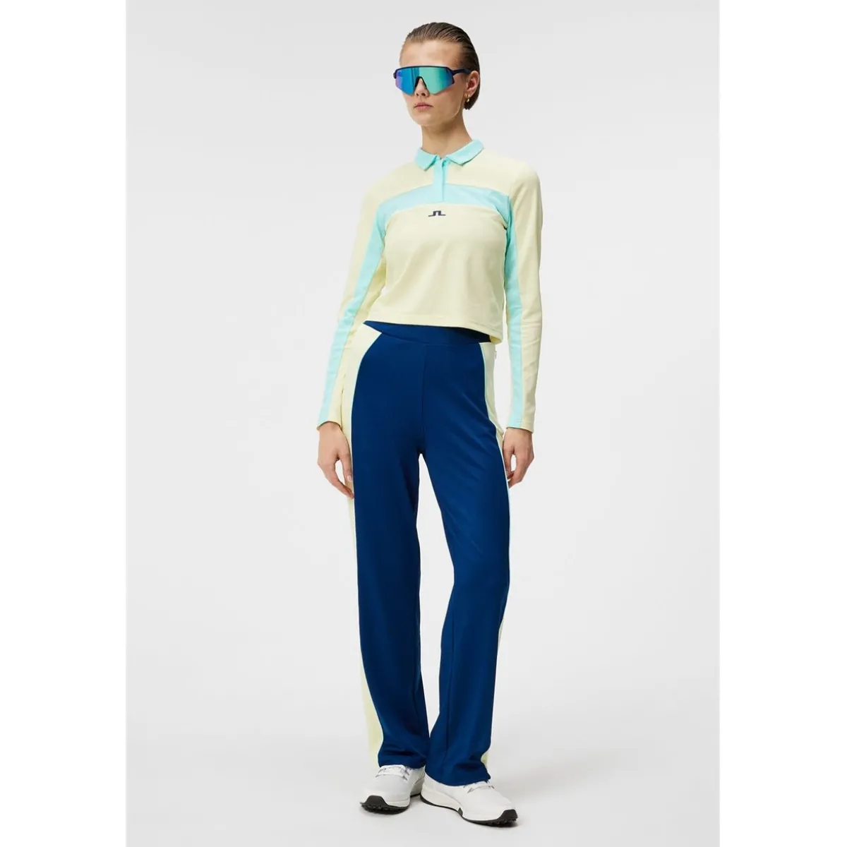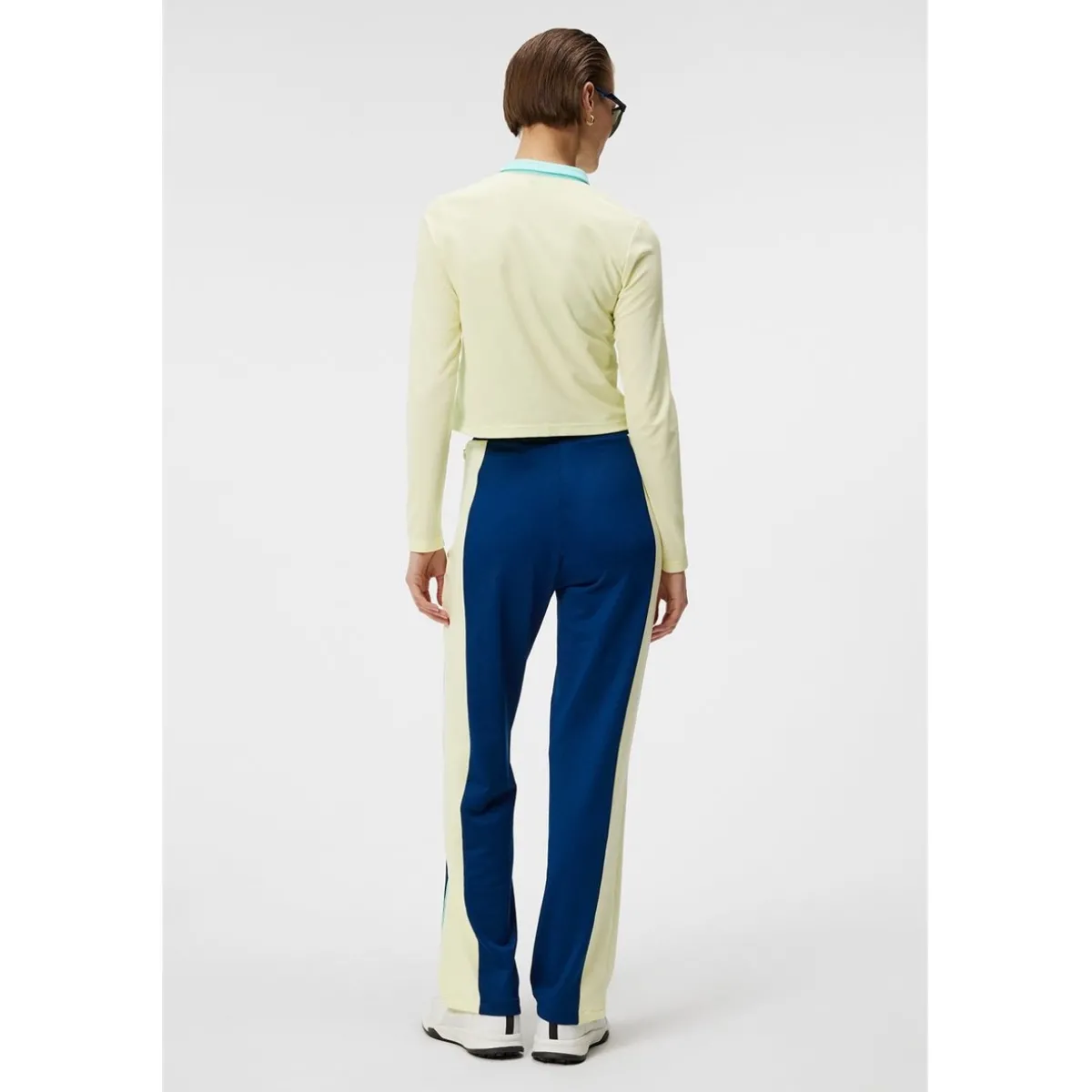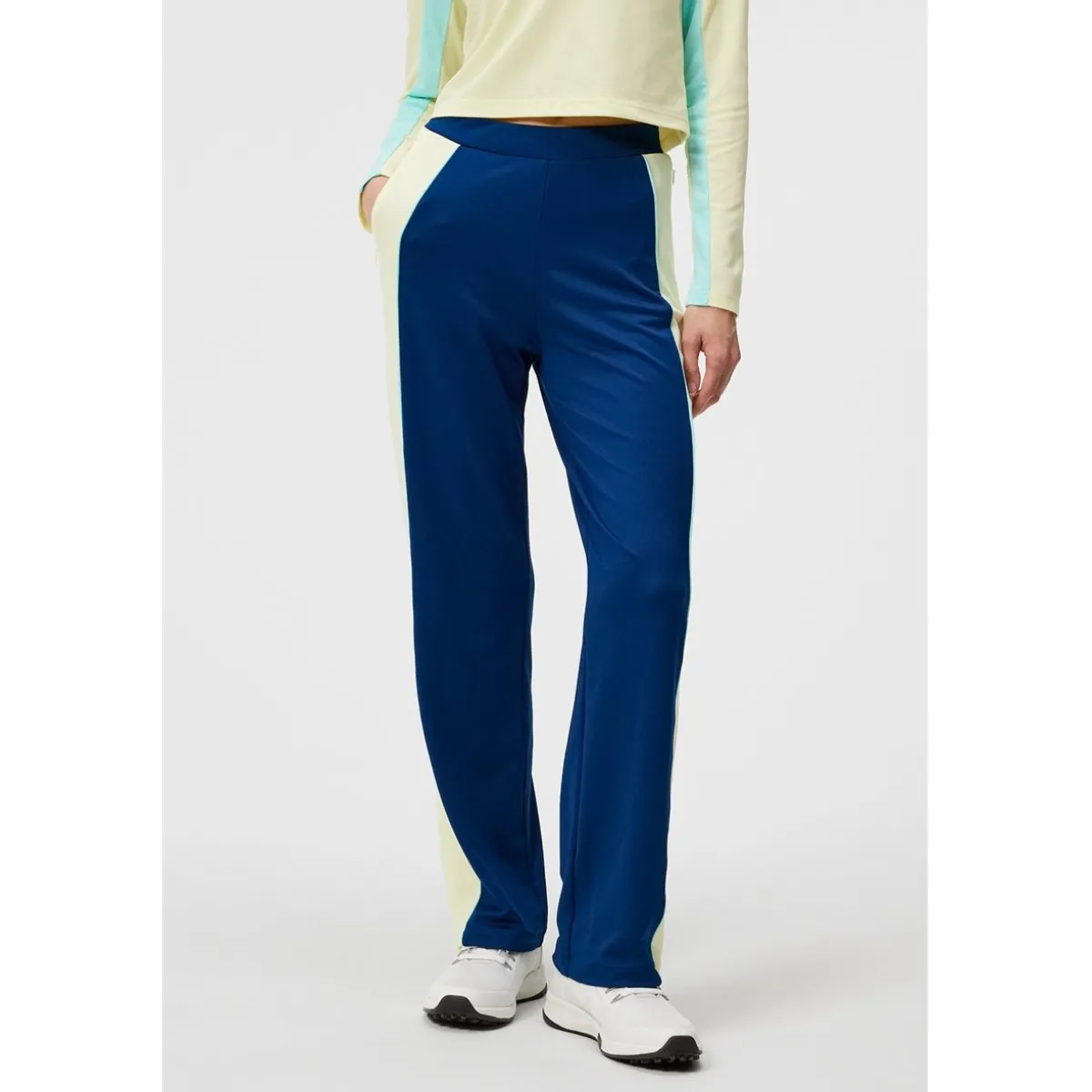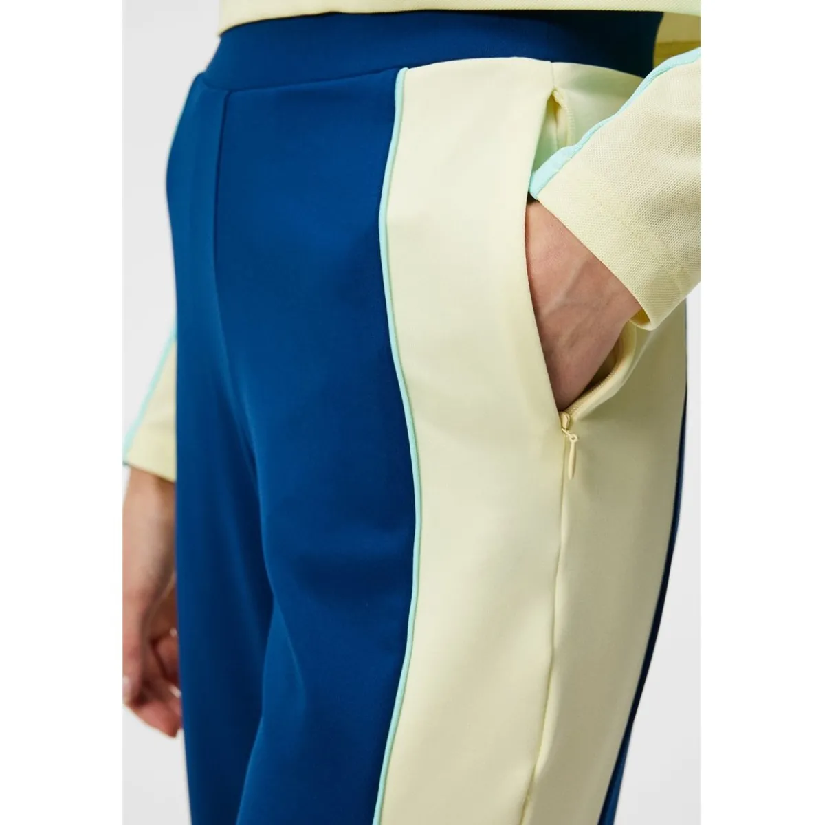 - Mid waist / Elastic waistband / Color blocked with contrast piping at the cut seams / Bridge print at back waist line