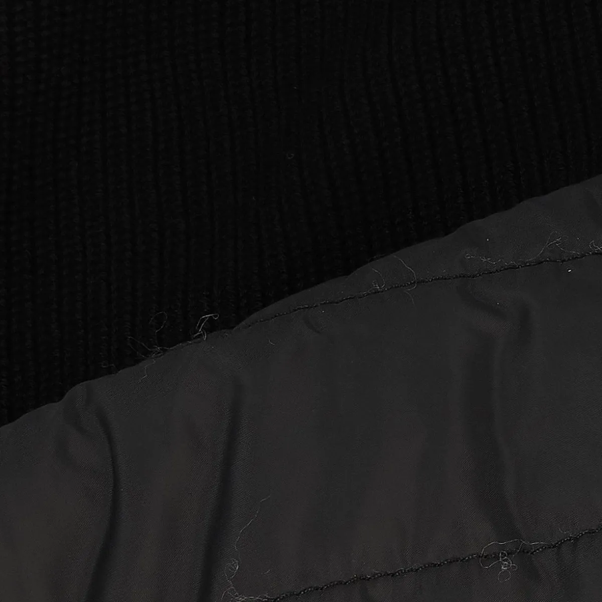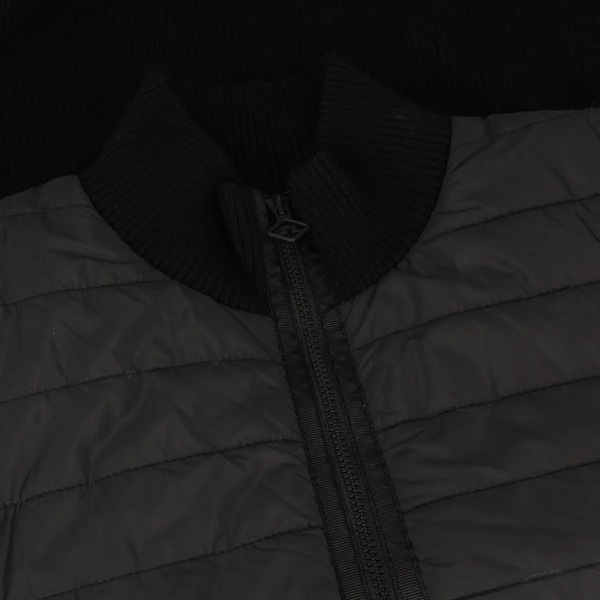- Two-way zipper / Two side pockets with concealed zipper / Ribbed body / Statement puller / Padded quilted panels at chest