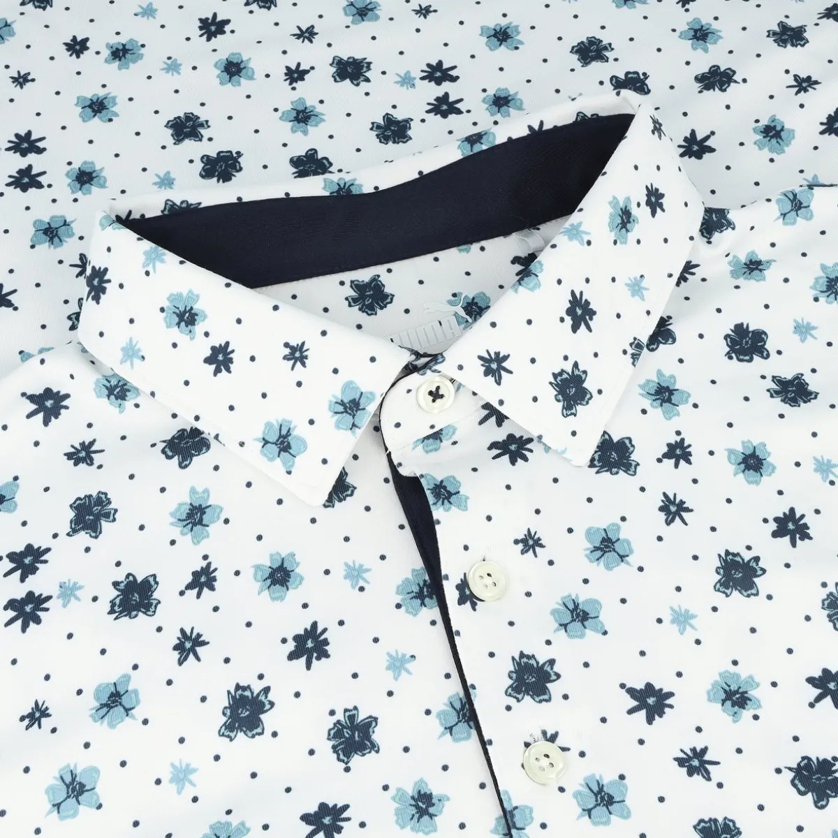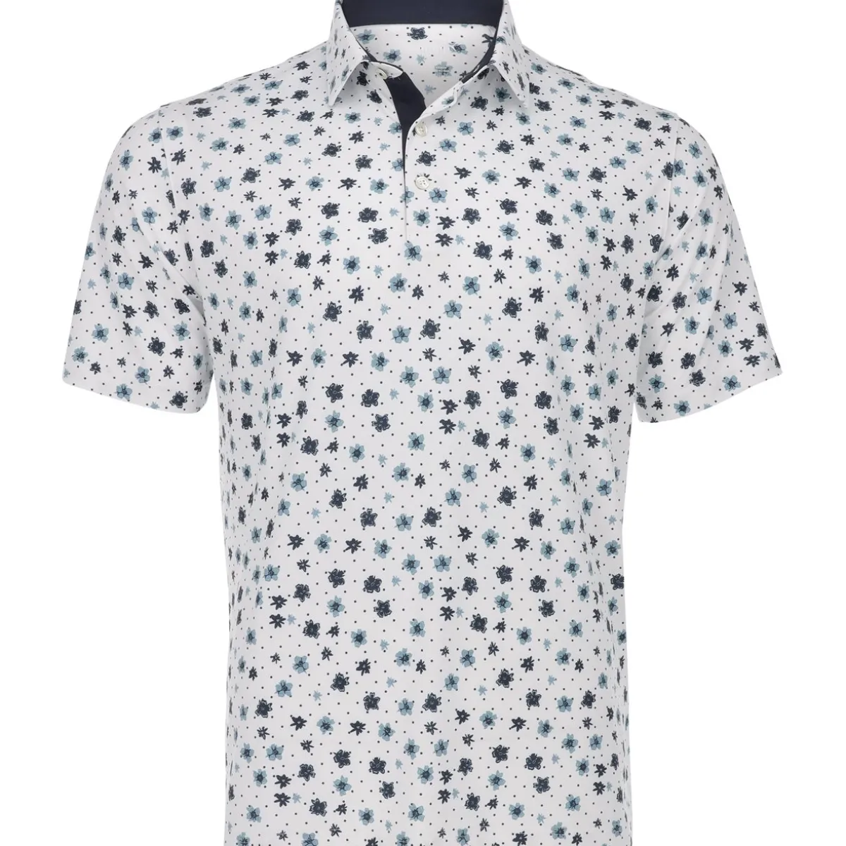 - 3-button placket / All-over floral print for added style on and off the course