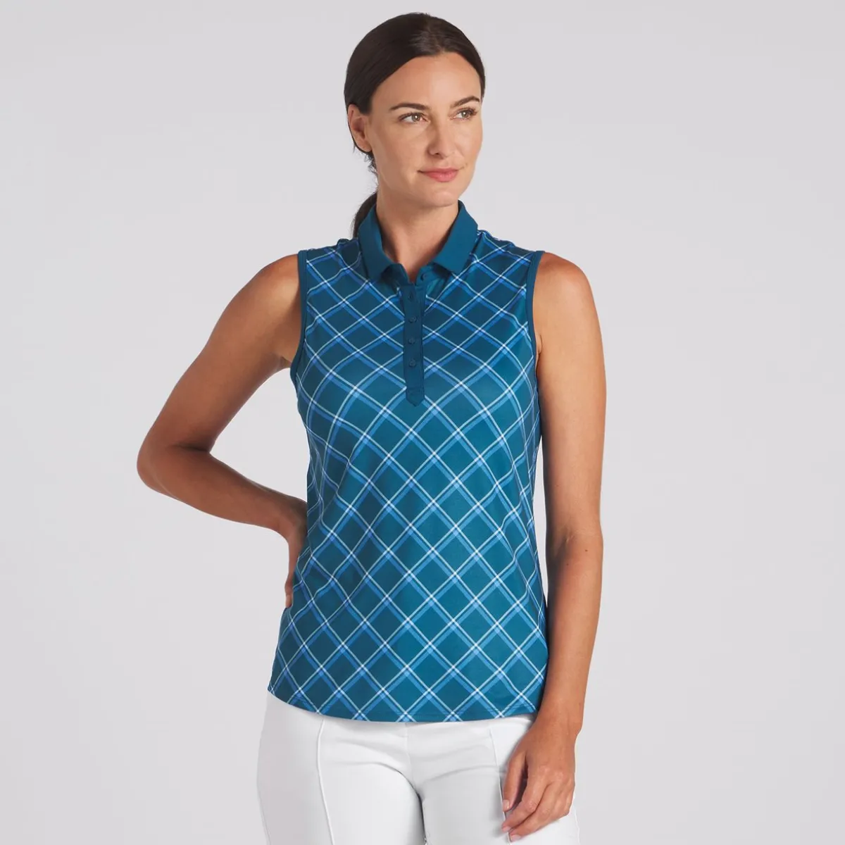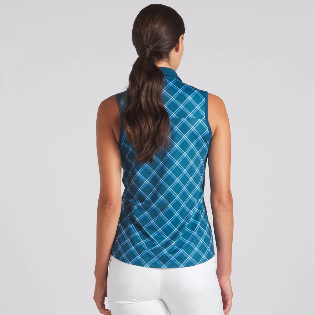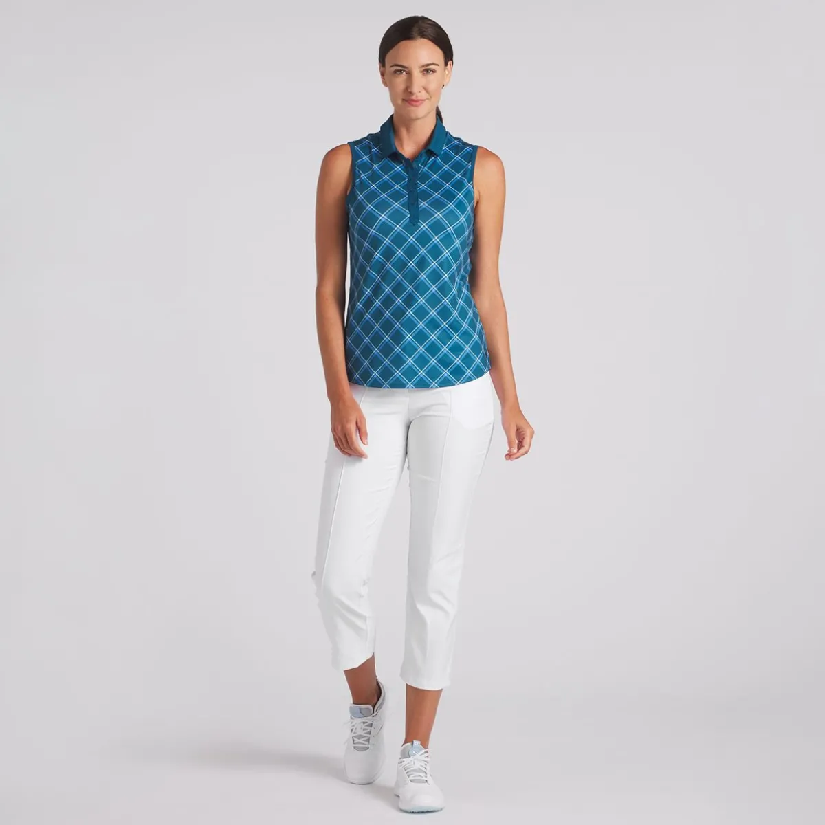 Puma Cloudspun Plaid Sleeveless Shirt Polo Short Sleeve Golf Apparel