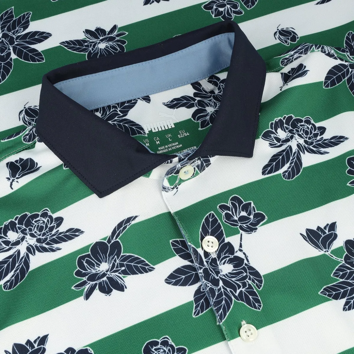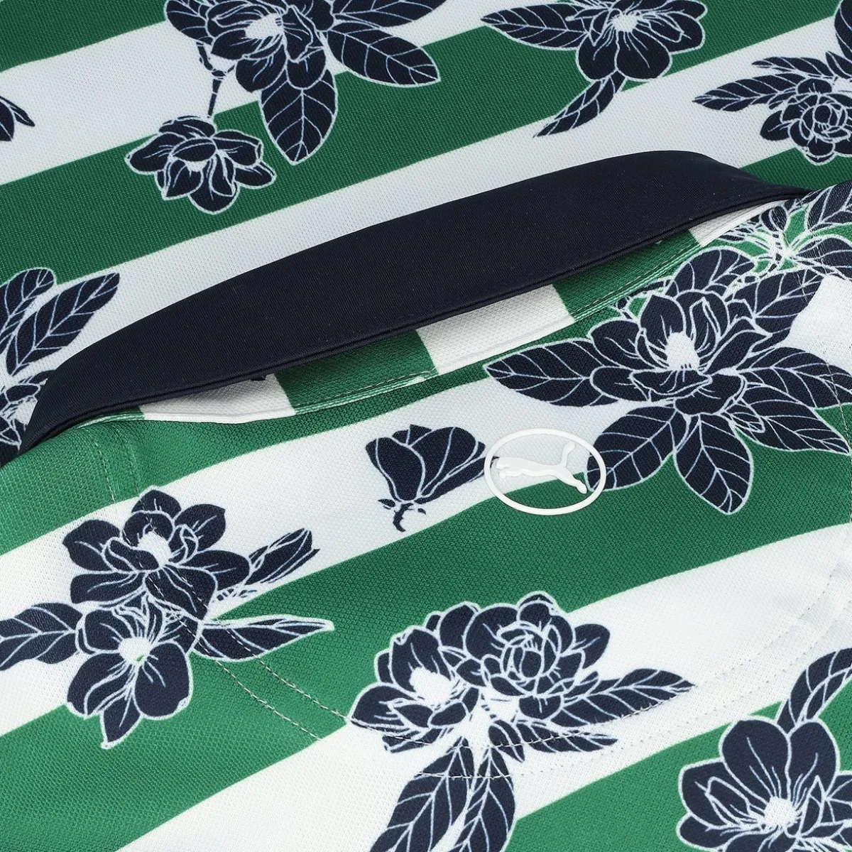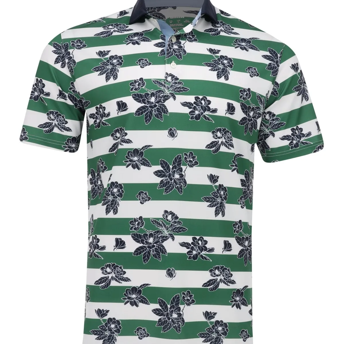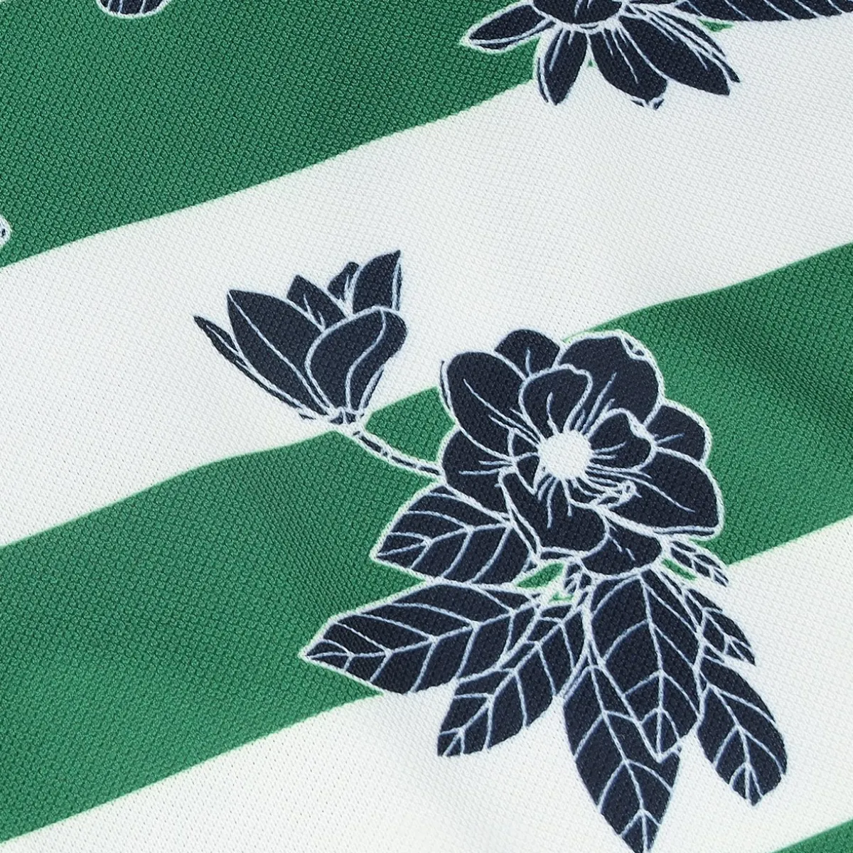 - Pique textured finish / Large stripes with floral all-over print / 3-button closure